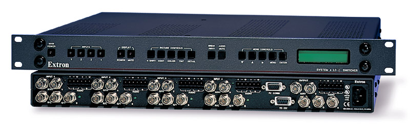 The System 4LDxi is a four input, one output projector control switcher with a built-in line doubler and is compatible with most digitally controlled data grade projectors on the market today. The System 4LDxi is also quad-standard compatible with NTSC 3.58, NTSC 4.43, PAL and SECAM for use with all international video formats.