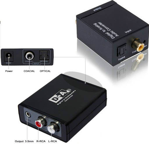This Digital to Analog Audio Converter is designed for either home or professional audio switching. It converts Coaxial or Toslink digital audio signals to analog L/R audio .