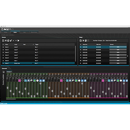 The previous version, called myDMX, harnessed a number of features and technologies in clusters aimed at generating effects, creating lighting schematics and controlling moving fixtures. myDMX 2.0 gathers all of these technologies under the aegis of Scene Builder which features updated icons,design, faders, colors and preset components allowing for a quicker and more pleasant workflow. More than just an effects generator, Scene Builder allows you arrange your lighting fixtures and "draw" effects onto them with a computer mouse on an exciting graphic user interface.
