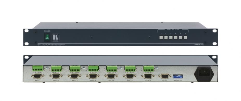 The VP-61xl is a high-performance switcher for computer graphics video signals, with resolutions ranging from VGA through UXGA and higher, and balanced stereo audio signals. The VP-61N has all the same features of the VP-61xl but without audio.